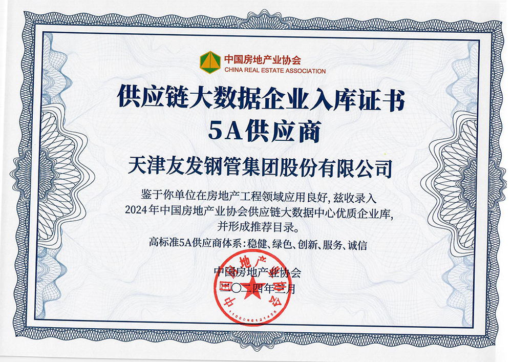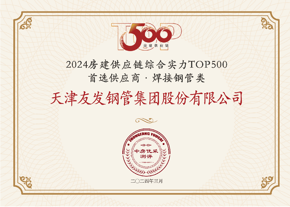 天津友發鋼管集團榮獲 “房建供應鏈企業綜合實力TOP500-首選土建材料類品牌·焊接鋼管類”10強!產業鏈?